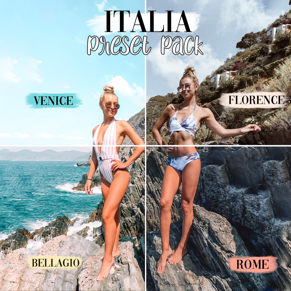 This pack was inspired by our trip to Italy, with all of the beautiful colors and landscapes that we were able to see. We fell in love with each city that we stayed in, and haven’t stopped looking at photos from our trip. The best part is, we genuinely use these presets on our feeds all the time, so we thought it was time to share it with you all!
